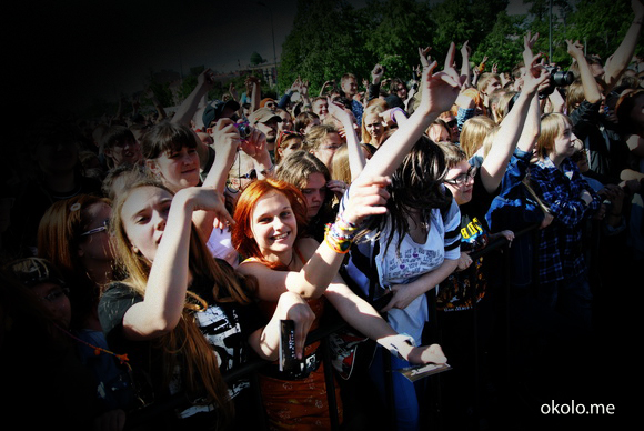 …На сцену поднялись «Мураками». Их выступлением завершался концерт на малой площадке. Так как группа «Мураками» уже некоторое время находилась в ротации «Нашего Радио», скучающие зеваки, узнав знакомые мотивы, поплелись ближе к сцене, иные, готовясь ко входу в «Юбилейный» слушали «Мураками» фоном, экстренно допивая пиво, панки всё так же слэмились…