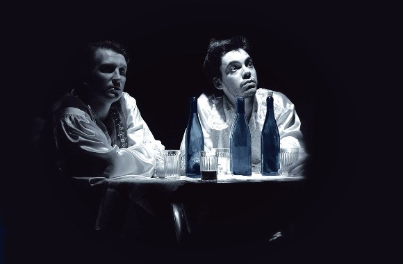 Вторая линия спектакля — ещё один диалог. В баре появляются двое приятелей в ливреях (Алексей Забегин и Андрей Папанин), они не на шутку увлечены беседой.