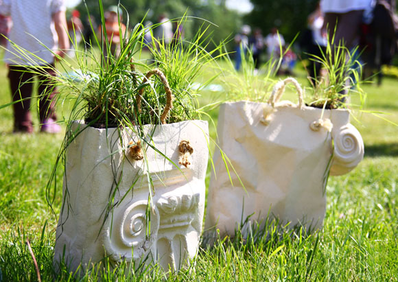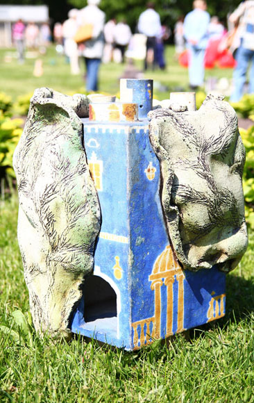 С 10 по 12 июня на Елагином острове прошла 9-ая международная выставка «Стекло и керамика на траве». На двух полянах разместились произведения более 100 керамистов и художников по стеклу. Все произведения создавались специально для этой выставки, и ранее не были представлены на суд зрителя. В выставке участвовали и заслуженные деятели прикладного искусства, и молодые художники. Изюминка выставки в том, что все арт-объекты созданы, чтобы гармонировать с природой в целом и с садово-парковым ансамблем Елагиноостровского дворца в частности. Парк превращается в произведение искусства, произведения искусства плавно перетекают в природу – концепция выставки интересна и многогранна, и каждый художник отразил свое понимание единения с природой современного искусства.