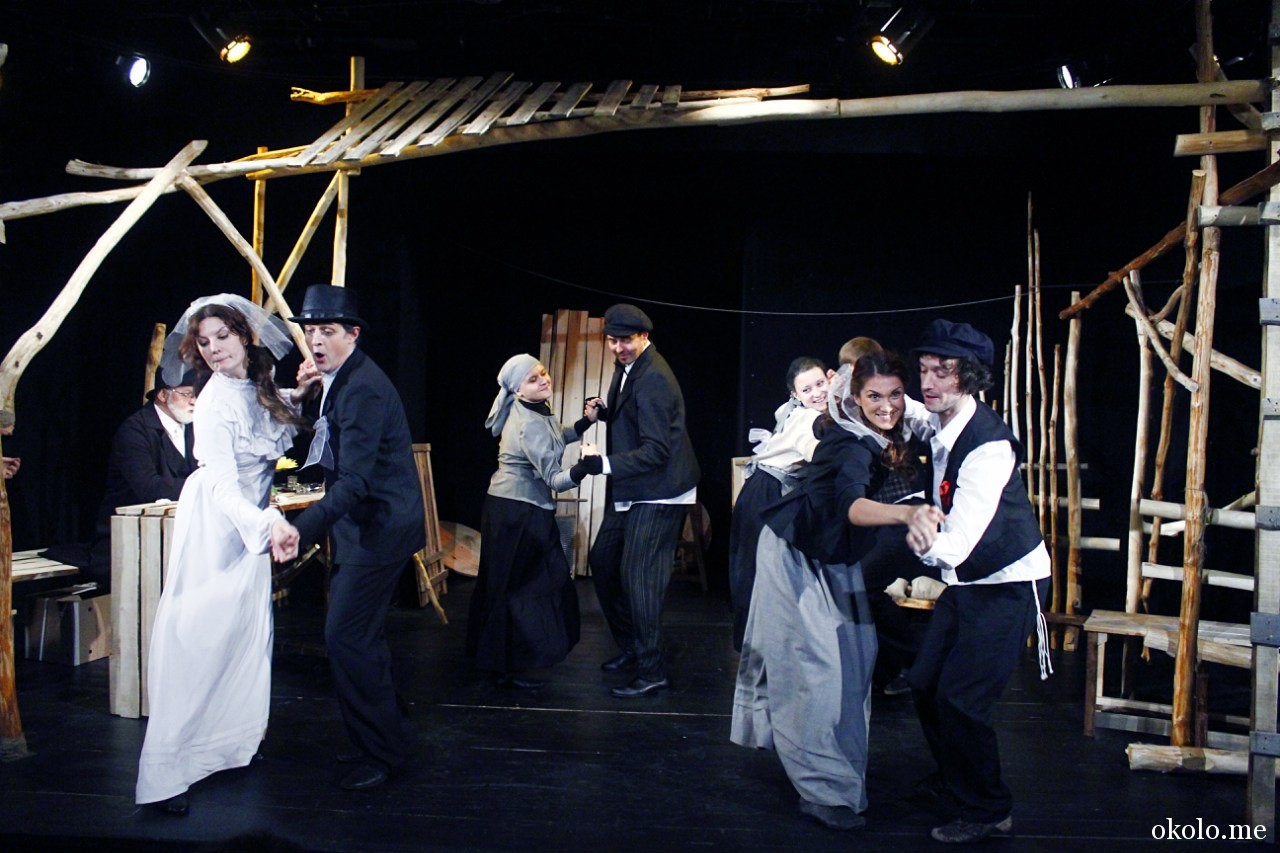 Историческая часть спектакля – еврейский погром, который случается прямо на свадьбе Цейтлы и Мотла. За что? Почему? На эти вопросы сложно ответить. Это всё Революция – массовая сила и массовый разум. Жестокость и бессмысленная агрессия. Картины этой жестокости на сцене показывать не стали, заменив меняющимися мизансценами актёров в корчащихся от боли позах, записью криков и мигающим светом. На мой взгляд, здесь не хватило живости происходящего – настоящего нападения. Но на маленькой сцене сложно уместиться большой семье молочника и погромщикам одновременно. Наверное, все повалились бы в зал.