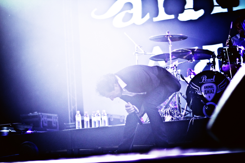 Наконец, появились сами участники группы. В официальных костюмах, солидные молодые люди прыгали и «поджигали», словом, выкладывались на полную. Интересное сочетание внешнего вида и обстановки, в которой играли музыканты, кстати, можно воспринять как типичную «энималджазовскую» метафору: из хаоса и потока стилей группа вбирает в свою музыку зачастую контрастные детали, чтобы потом слить их в единый синтез гармонии и беспорядка.