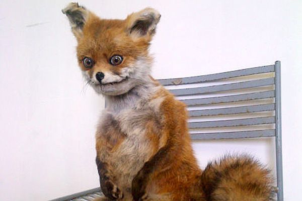 Вследствие ошибки в производстве, чучело лиса выглядит несколько потрепанным, из-за чего художница долгое время не решалась выставлять его. Однако, несколько позднее она выставила чучело на аукцион, где его купили за 330 фунтов стерлингов, а фото сидящего на стуле чучела быстро растащили на фото-коллажи. В России чучело прозвали «Упоротый лис», а в Интернете вскоре появилось огромное количество «фото-жаб» с участием лиса.