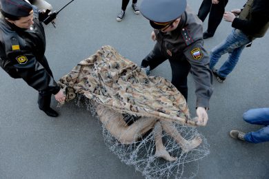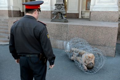 3 мая около здания законодательного собрания Петербурга художник Петр Павеленский устроил протестную художественную акцию «Туша».