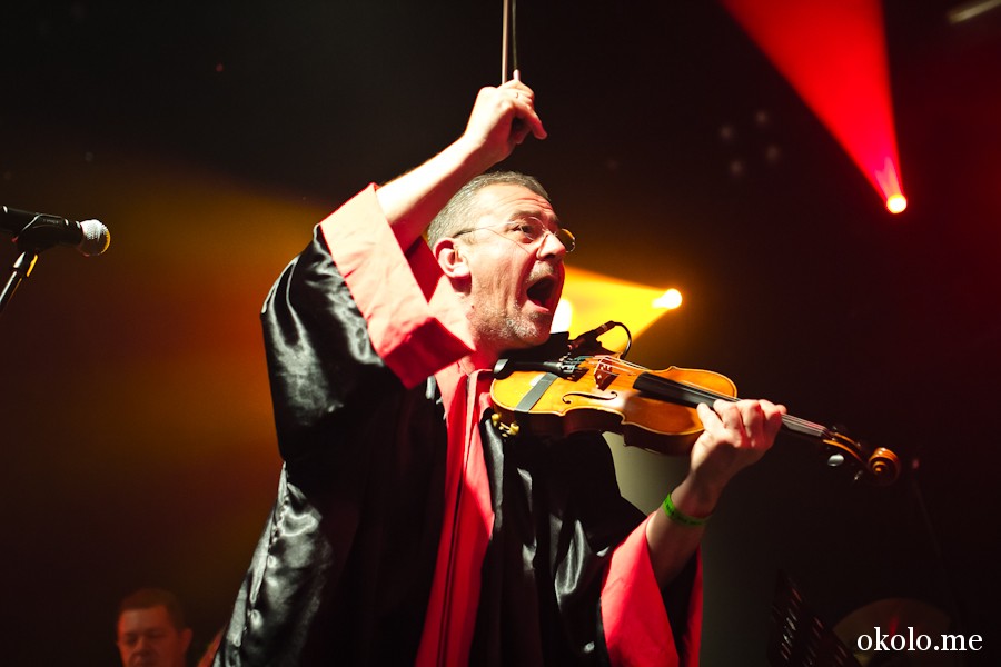 Какая-то девушка в толпе спрашивала у своего спутника: «А кто из них Кустурица?». Забыть после этого концерта, кто такой Кустурица ей вряд ли удастся. Режиссер, которому в этом году исполнится 60 лет, настолько энергично перемещался по сцене, что за ним было не уследить. Он то и дело подпрыгивал, бегал по сцене и по старой доброй традиции вытаскивал на сцену девушек и заставлял их выполнять физические упражнения. Остальные музыканты тоже излучали радость. Деян Спаравало, например, прыгал так часто, что казалось, вот-вот выпрыгнет из своей накидки.