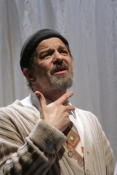 Конечно, никакого героического пафоса в спектакле нет – купированы многие сцены и диалоги, совершенно не ибсеновским оптимистическим флером обладает финал. Это подчеркивается неказистым, в духе чеховского «недотепы», видом героя в широком и уютном вязаном кардигане. Но он человек не только слова, но и действия, в отличие от чеховских персонажей. Артист Сергей Курышев в роли Томаса Стокмана значительно преображается: кажется, что он даже становится меньше ростом, настолько незаметен, незлобив и «негромок» его персонаж (что особенно красноречиво видно на контрасте с братом, в исполнении Сергея Власова). Но внутренняя настойчивость, уверенность в своей правоте, принципиальность взрывают внешнее впечатление. Его речь спокойна, доходчива, логична, убедительна, но порой твердость уступает нерезкой, заретушеванной эмоциональности, проявляющейся лишь в удивлении, написанном на лице, и движениях, умеренных и неспешных, но глубоких энергичной мысли.