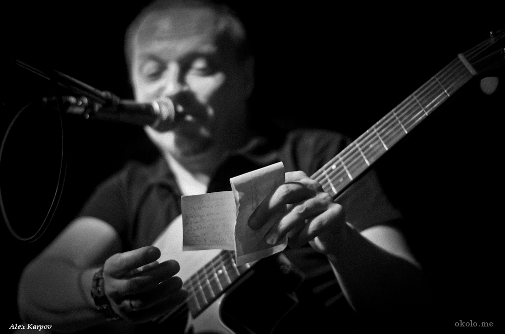 Всё так и было. Сергей просто с гитарой, и никакой беды со звуком. Только сам концерт, по словам Сергея, для него немного странный. Через несколько дней он выступает в Москве с новой программой, и эти новые песни, как выразился он сам, клокочут у него внутри, а петь их сегодня нельзя, потому как всё будет на премьере.