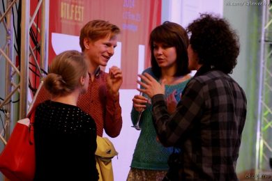 Наталия Зайцева удивила всех, рассказав об интригующей и масштабной OFF-программе, которая будет проходить каждый день после вечернего спектакля в фойе БТК. В свой День Рождения гостям подарили возможность увидеть небольшое выступление, посвящённое творчеству группы Nirvana, – это одна из будущих фишек дополнительной программы феста. Во время музыкального перфоманса трое артистов продемонстрировали свою аранжировку самой известной песни Nirvana — Smells Like Teen Spirit. До и после их выступления крутились аудиоинтервью Курта Кобейна.
