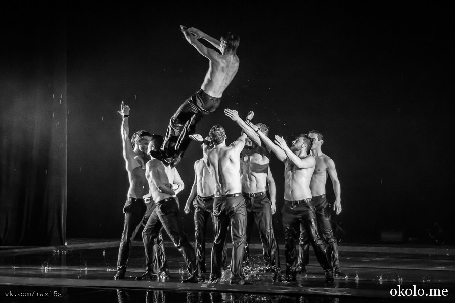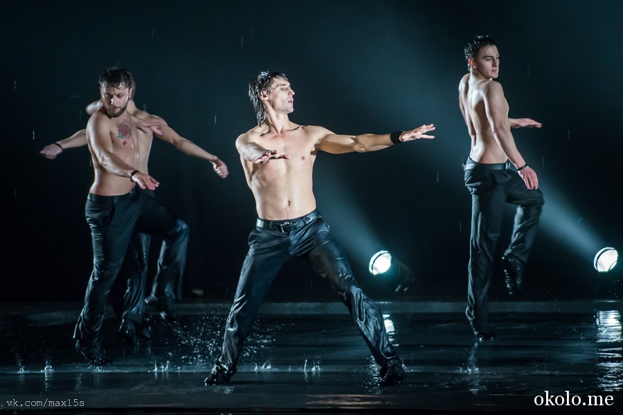 На финал оставили то самое знаменитое шоу под дождем. Для тех, кто не верит — это не метафора, дождь был действительно настоящий. Артисты танцевали под потоками воды, играя брызгами, эффектно разлетающимися вокруг, и создавая ощущение чего-то неземного, нереального. Эти танцы – невероятная феерия. Артисты будто заряжались от воды мощнейшей энергетикой и посылали ее в зрительный зал.