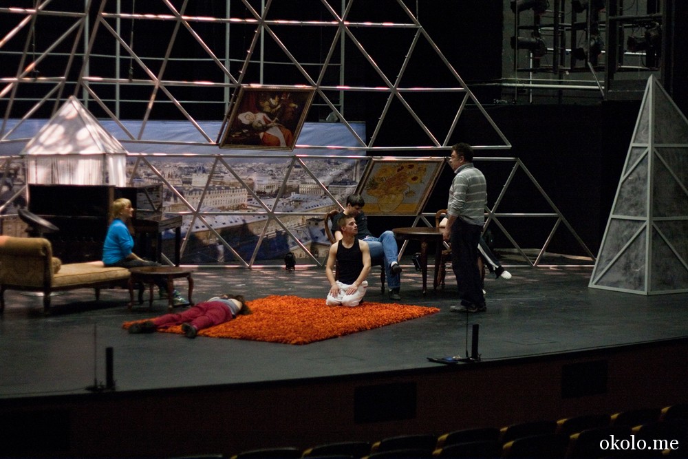 Пройдя через холл и совершив круг, мы вновь оказываемся неподалеку от того места, где начали нашу небольшую экскурсию, но теперь нас приглашают посетить репетицию молодых артистов.