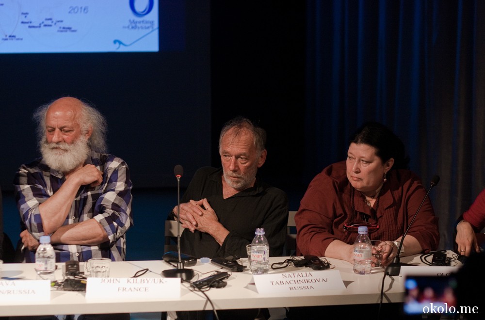 21 мая для всех участников «Одиссеи» был огромный праздник – исполнилось четверть века «Каравану мира», огромному театральному путешествию-эксперименту. Событию, в реальность которого не верят даже его участники. Событие, над которым работала вся Европа. 125 машин, половина из которых ломалась каждый час, водители, которые учились водить за неделю перед отъездом, 8 театров Европы, 60 коллективов со всей России и неимоверное желание сделать то, на что раньше никто не решался. Во время Круглого стола Полунин и Килби рассказали о преградах, которые вырастали на их пути, прежде чем они добились своей цели.