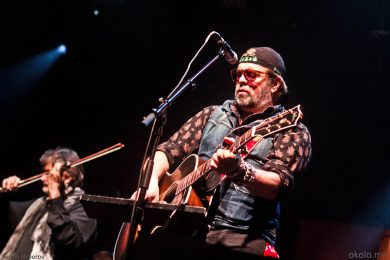 12 мая в клубе А2 было на редкость светло и празднично – там состоялся концерт Бориса Борисовича Гребенщикова и группы Аквариум. Но давайте по порядку: на часах почти восемь, люди с нетерпением ждут БГ, а в это время лампы с абажурами, стоящие на сцене, и ставший уже традиционным портрет Будды на стене, создают душевную атмосферу с лёгкой примесью волшебства. И вдруг раздаётся звучание флейты и скрипки, не само по себе, а благодаря Брайану Финнегану и Андрею Суротдинову. Вскоре вышел и сам Борис Борисович, который не устаёт излучать сияние вот уже шестьдесят лет.