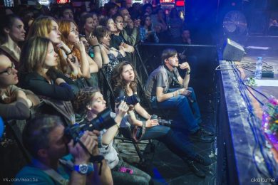 Народу, как и следовало ожидать, собралась тьма – шарику негде было упасть. Поклонники громко скандировали название группы, вызывая любимых музыкантов на сцену, хлопали, перебрасывались воздушными шарами и держали гаджеты наготове, дабы успеть запечатлеть появление Хелависы. Наконец, она вышла — и зал просто взревел от радости, предвкушения и немного от удивления. А удивляться было чему, ведь королева русского фолка на этот раз предстала перед публикой в довольно непривычном образе.