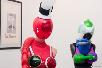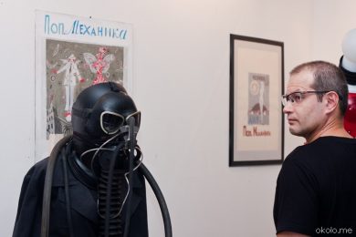 Вечер начался с открытия выставки «По следам «Поп-механики». Гости Центра Современно Искусства получили возможность увидеть своими глазами редкие видеозаписи живых выступлений «Поп-механики», уникальные концертные костюмы, созданные авангардным модельером Сергеем Черновым, фотографии музыкантов и живописные произведения «Новых художников», нередко принимавших участие в оформлении самых грандиозных выступлений коллектива. Выставка расположилась на втором этаже культурного центра. Поднявшись по лестнице, гости оказывались перед знаменитым утюгоном. По легенде, когда-то придуманной Курёхином для администрации одного из концертных залов, утюгон – первый советский синтезатор, собранный самим Маяковским.