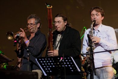Духовики ненадолго уступили место на сцене другим звездам: Вячеслав Бутусов и Юрий Каспарян, когда-то игравшие в «Поп-механике», при поддержке музыкантов «Ю-Питера» исполнили две песни Виктора Цоя: «Печаль» и «Пачка сигарет». После того как Бутусов покинул сцену, на свое место вернулись духовики, и оркестр под экспрессивным управлением Айги продолжил исполнять сочинения Капитана: «Live At Leningrad», «Три сестры», «Трагедия в стиле минимализм».