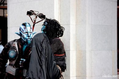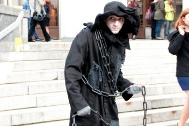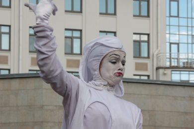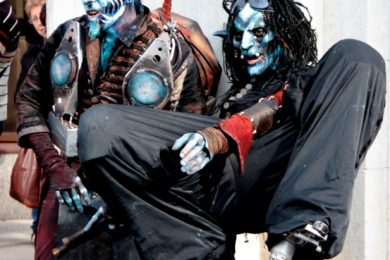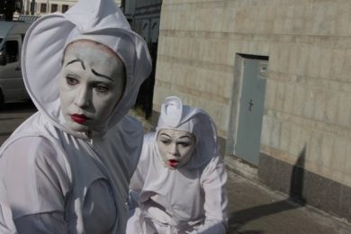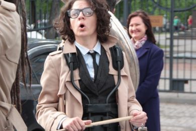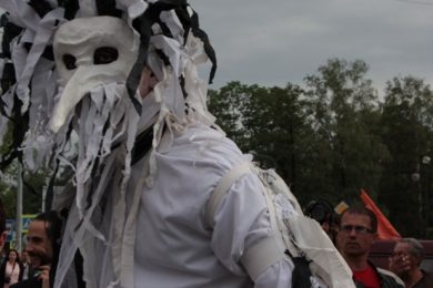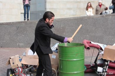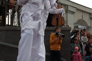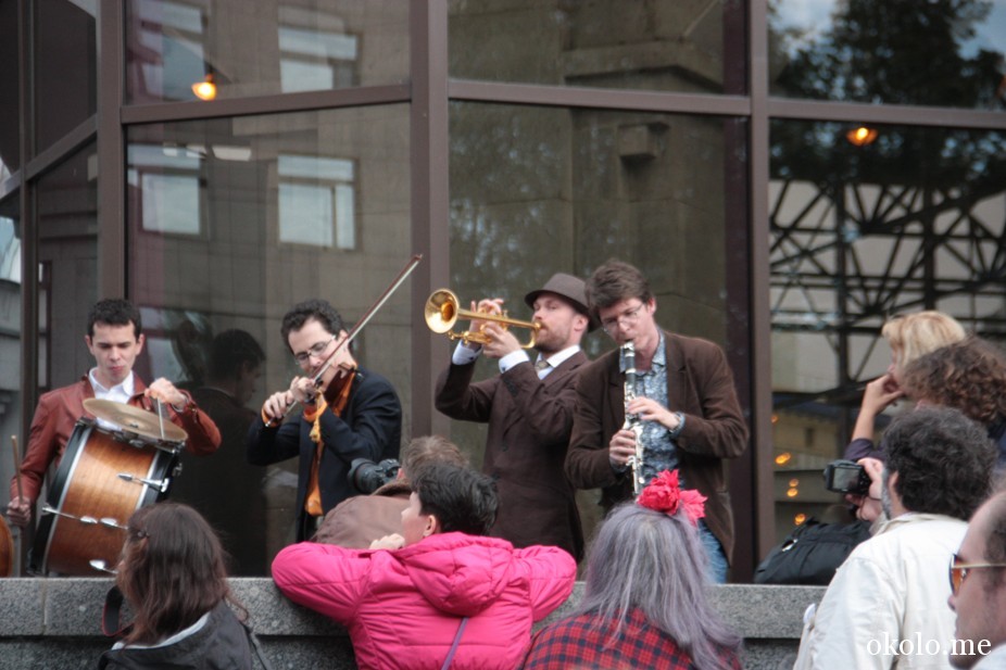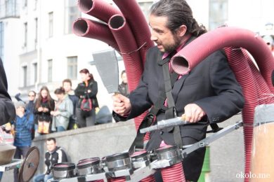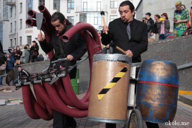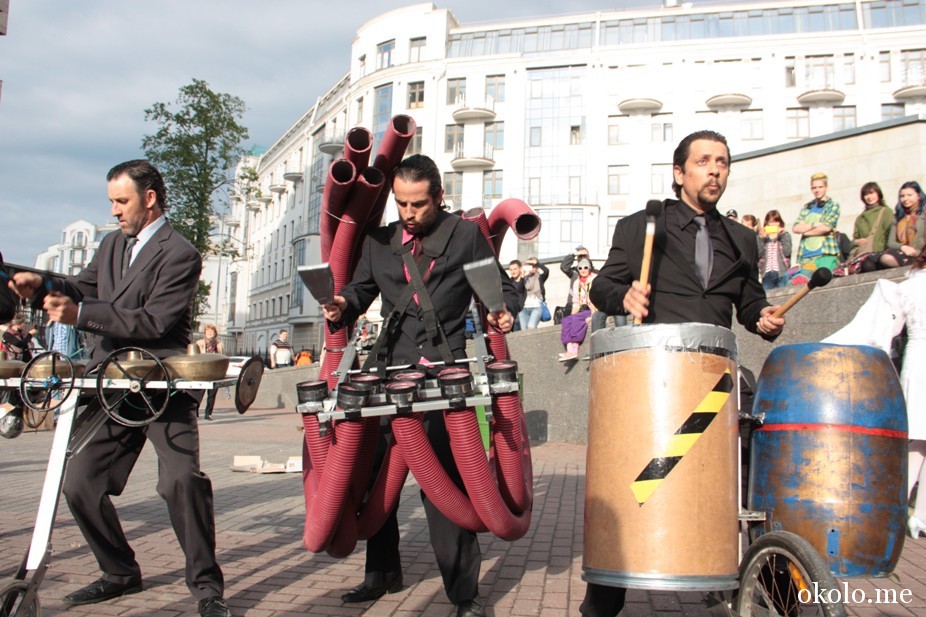 Но настоящей кульминацией открытия фестиваля стали отнюдь не ангелы, а настоящие черти, которые под тяжелый рок взлетели по ступеням метро на ходулях, чтобы там устроить свою адскую пляску и прыжки. Черно-синие маски с перекошенными лицами, железная голова дракона и страшный хохот. Казалось бы, после такого уже ничего не сможет ни шокировать, ни удивить… Разве что сицилийская мафия! Несколько бородачей в строгих костюмах сначала громко переругивались с итальянской жестикуляцией, а потом превратили то, что на первый взгляд казалось обычной кучей мусора, в ударные и зажгли на них с такой экспрессией и энергией, что никто не мог удержаться от улыбок, аплодисментов и, конечно, движений в такт музыке.
