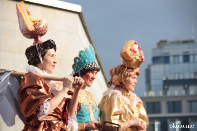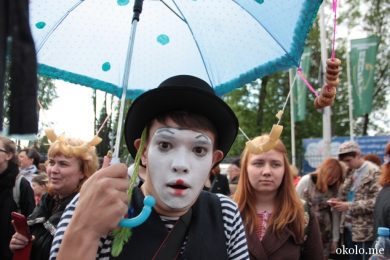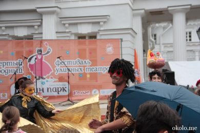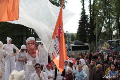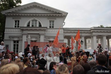После торжественного представления театральных трупп организаторы устроили народные гуляния. Народ в буквальном смысле гулял, водил хороводы и паровозики с артистами.
