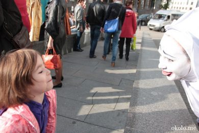 А меж тем какая-то странная черно-белая птица водила на поводке меланхоличного Пьеро, мимы показывали язык детям, а клоун сачком ловил зазевавшихся зрителей.