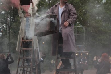 Зрители не успевали отойти от одного переживания, как актеры погружали их в следующее. От радости к боли, от боли к надежде. То же и с точки зрения жанра — из сюрреалистического народного пиршества спектакль превращается в своеобразный кибер-панк, чтобы потом стать символичным, трогательным до мурашек действом, вызывающим и сочувствие, и сопереживание.