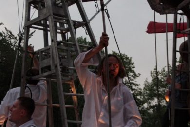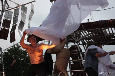Затем все участники и гости фестиваля прошли к Большой сцене, где польский «Театр восьмого дня» показал спектакль «Ковчег».