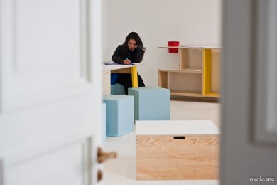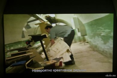 В следующем зале – видоинсталляция Елены Ковылиной «Равенство». Художница критически оценивает современное общество и с помощью подпиленных табуретов и видеокамеры бросает вызов социальному неравенству.