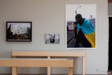 Далее – еще один революционно настроенный зал, где представлены репортажные фотографии с Майдана, выполненные Борисом Михайловым в конце декабря 2013 года.
