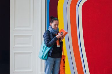 Мы выбрали последних и начали осмотр с работ Оливье Моссе: просторный зал украшают «Новые картины» – четыре однотонных квадрата разных цветов. Художник следует за ранними абстракционистами и говорит об условности человеческого восприятия в современном мире.
