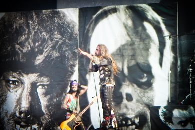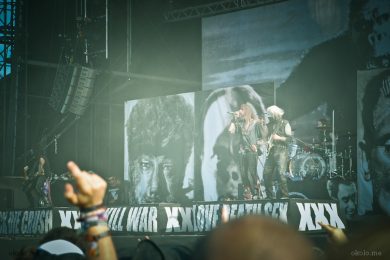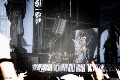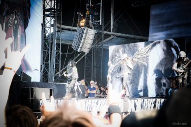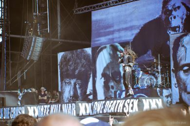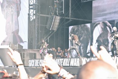 Выступление первого хэдлайнера создавало ажиотаж, как мне показалось, скорее любопытством, чем фанатичным признанием. Само собой, Rob Zombie в Европе всегда вызывал интерес, и прежде всего, как прогрессивный музыкант. А может, как просто модный. Ну да хватит лепить умные слова, факты сами говорят за себя — земля дрожала под ногами на «Dragula» и «Superbeast». Rob идеально выстроил сет-лист, среди старых хитов вклинил кавер «Diamond Head», известный всем как хит Metallica, не забыв и про них лично. «Мы сыграем сейчас секунд 15 одной песни. Как там дальше мы просто не знаем…», — ляпнул Rob, и начался «Enter Sandman». Куплет и припев под общий восторг само собой отыграли. Он вообще оказался шутником и лихим клоуном в самом хорошем смысле, но пластике его движений и театральности могут позавидовать многие.