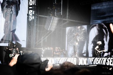 Это шведы Watain решили сжечь всё и вся живьём. Все были не против, но фотографам был запрещена съёмка именно из-за экстремального пиротехнического шоу. Столбы огня на фоне чадящих факелов под звуки скоростной резни собрали довольно таки немалую аудиторию, которая и знать не хотела про всяких там хэдлайнеров. Причём некоторая часть публики вела себя так, будто это их последний концерт на этом свете. И опять замечу — такое явление было повсеместным на протяжении всего фэста и лично мне это очень понравилось. И Watain тоже звучали вполне убедительно и не кашеобразно, несмотря на то, что дело близилось к полуночи и жаром от сцены пылало как от гигантского камина.