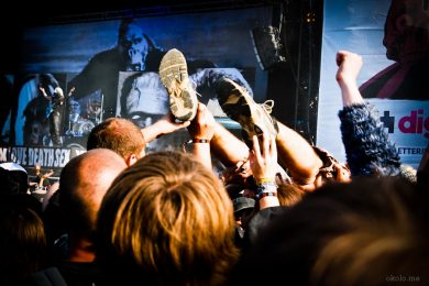 С трудом оторвав ноги и голову от самых лучших трэшевых хитов в мире, я решил взглянуть на действо под названием “Death To All”, которое ещё за долго до концерта вызывало много пересудов. Формация, состоящая из музыкантов оригинального Death и вокалиста Cynic, мягко говоря, несла смесь музыки не очень то техничной (по своему исполнению) и с трудом смахивающей на бодрые запоминающиеся хиты незабвенного Чака Шульдинера. Может кому-то это в данной атмосфере и вкатило. Уходили мы ночной дорогой среди ещё дышавших летним зноем виноградников под мощные пафосные гимны Sabaton. Представьте себе тёмную южную ночь среди абсолютно деревенского пейзажа и где-то за спиной эхо от динамиков и людской толпы доносит до вас: «Primo Victoria!» Шоу продолжалось до двух часов ночи, а для нас день первый был завершён.