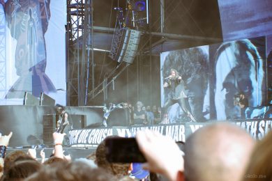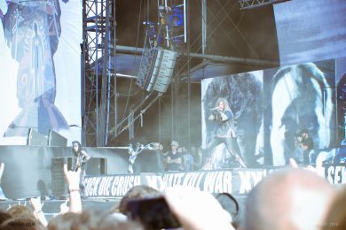 Расположение главной сцены «Mainstage 01», где и выступали главные «хэды» фестиваля, выбрано с умом. Всё поле имеет некий уклон и именно эта сцена наиболее видна из разных точек. Трудно сказать, какое количество людей наблюдало данное выступление Iron Maden. Да простят меня читатели, но мне придётся забежать вперёд и объявить быть может для кого и грустный, но очевидный факт. Самая большая аудитория, которая неутомимо плясала, пела-орала и, просто говоря, было неравнодушна даже на максимальном удалении от сцены (около 1 км), собралась именно на Iron Maiden. Среди главных хэдлайнеров Хэллфэста именно они были удостоены таким вниманием и раскованностью зрителей. Возможно данное мнение спорно, но об этом чуть позже.