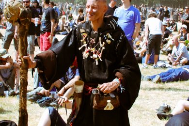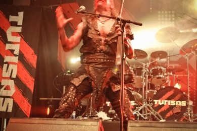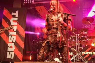Чуть ранее я уже упоминал тот факт, что самое любопытное на данном концерте именно публика. Пусть видит Бог и Дьявол, но отличить музыкантов от зрителей на концерте Turisas было порой сложновато. Люди, костюмированные в стилистике ранних набегов диких викингов на Европу, наблюдались в масштабах чуть ли не тех самых набегов. Финнов принимали как родных, подпевая и танцуя даже за пределами страшного шатра «Temple-Altar».
