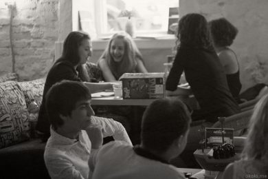 Каждый смог найти себе занятие по душе. В вип-зале все было готово для интригующего квеста «Спиритический сеанс» от компании Questoria: «Лондон, 1872год. Убит совладелец Ост-Индийской компании лорд Корнуэлл. Арестованы трое подозреваемых. Но улик не хватает. Скотланд-Ярд обращается за помощью к медиуму…». К тем, кто не успел или не захотел записаться, чтобы принять участие в квесте, подходил представитель Мосигры и предлагал настольные игры. И, разумеется, каждый гость мог заказать оригинальные блюда от шеф-повара и основателя FaCULTetа Дениса Кима. Меню заведения радует как своим разнообразием: тут и пирожки на пару, и азиатская кухня, и классические стейки, паста и бургеры, так и расценками: большинство блюд стоят в районе 200-300р. Также нельзя обойти вниманием привлекательные шот-сеты: 5 шотов за 600р., при средней цене в 200р за 1 шот, это весьма недурственно, господа.