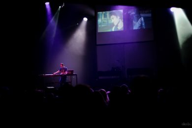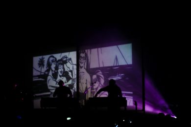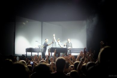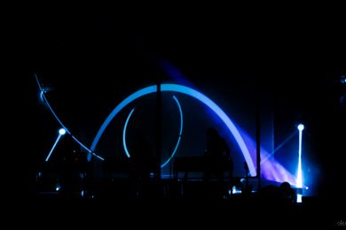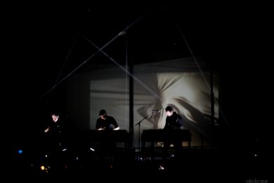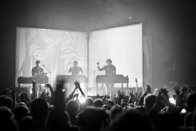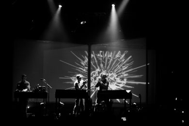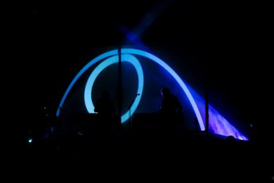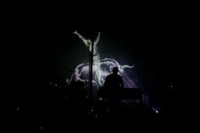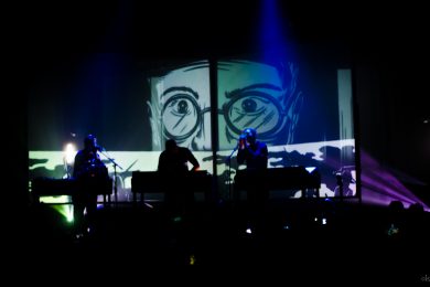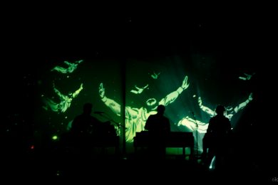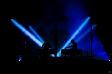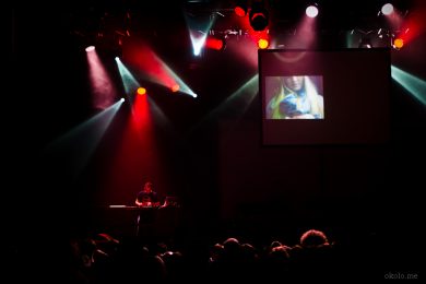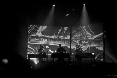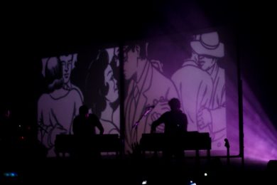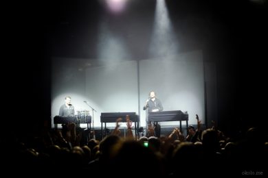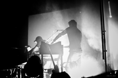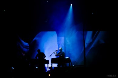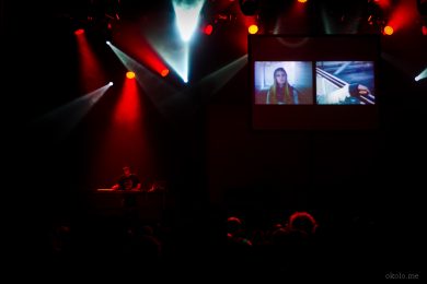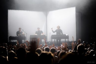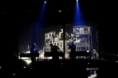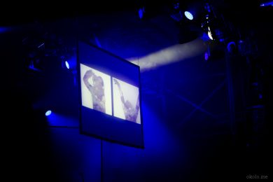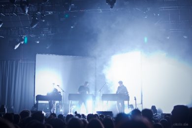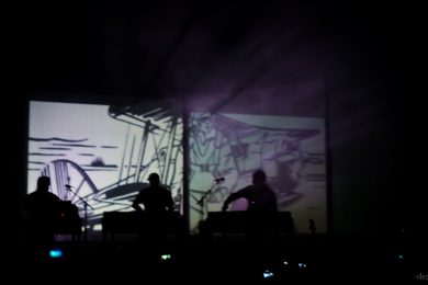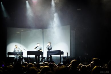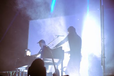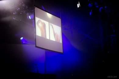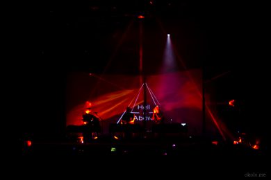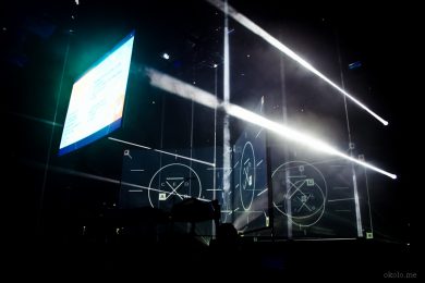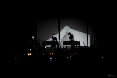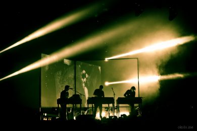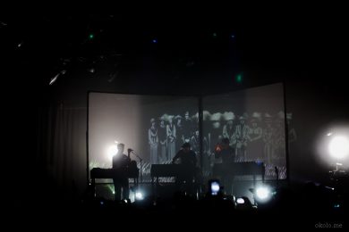 Надпись на экране перед выступлением гласила: Moderat — это очень тёмное шоу. Так что разглядеть что-либо на фото ниже у вас вряд ли получится, но вы всё равно попробуйте: