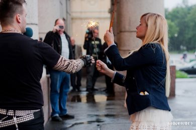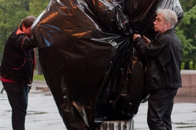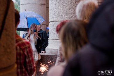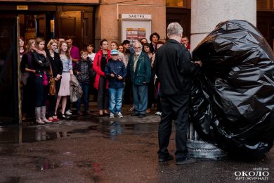 Затем все были приглашены на площадку перед театром, чтобы стать свидетелями открытия импровизированного памятника Леонарду Бернстайну. Зрителям раздали бенгальские огни, и все замерли в ожидании. Тент был сброшен, и оказалось, что постамент пуст. Но в воздух взмыли 96 цветных шариков — именно столько исполнилось великому композитору. Вот таким оригинальным способом артисты, режиссер и все, кто работал над мюзиклом, отметили не слишком круглую, но, тем не менее, важную дату для всех ценителей красивой музыки.