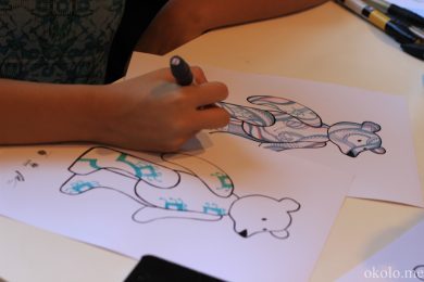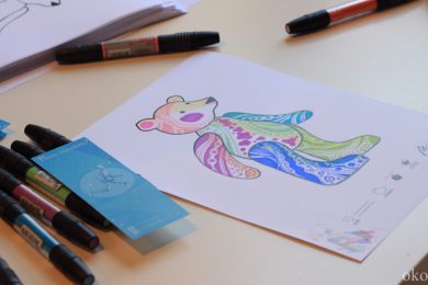Пока одни слушали и с аппетитом вкушали информацию, обмахиваясь подручными средствами, другие делали себе памятные сувениры: от линогравюры, до раскрашенного профессиональными маркерами мишки.