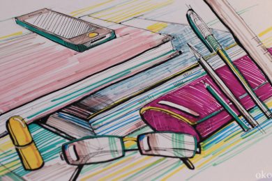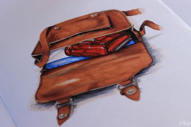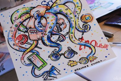 По соседству с линогравюрой можно было раскрасить мишку или попытать счастья и выиграть прекрасный кожаный пенал от ARTSKILL. Применив, соответственно, свои иллюстраторские способности и творческие головы, нужно было изобразить содержимое сумки или вещь, которую постоянно носите с собой. Победителя конкурса выявили под конец дня – им стала Елена Коробейникова, сиреневый пенал художника ушёл именно в её талантливые руки.
