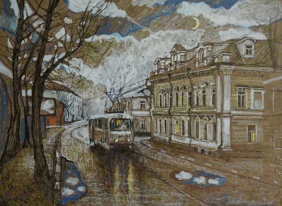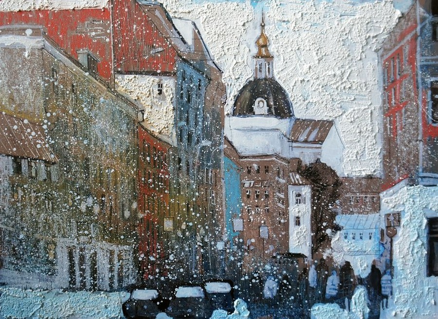 Мои картины о моём ощущении действительности, об ощущениях человека, живущего в городе, вдохновляющегося его архитектурой , людьми, друзьями, социальными настроениями, состоянием погоды и множеством всего остального, что ежеминутно происходит в нём. Поэтому из такого разнообразного окружающего и не менее разнообразного внутреннего мира я постоянно черпаю вдохновение.