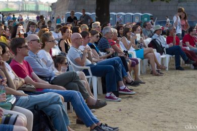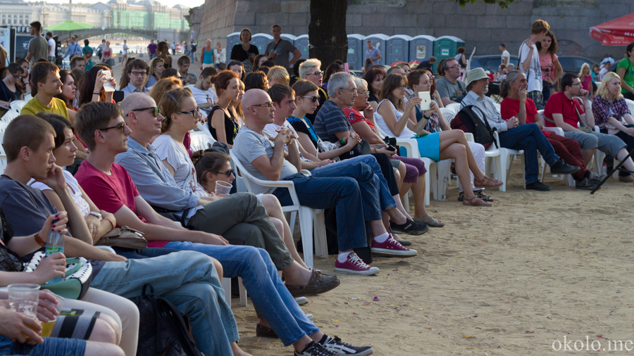Пока 2 августа Санкт-Петербург пестрел сине-белыми полосами в день ВДВ, на пляже Петропавловской крепости набирал обороты второй день фестиваля OPEN—CINEMA.