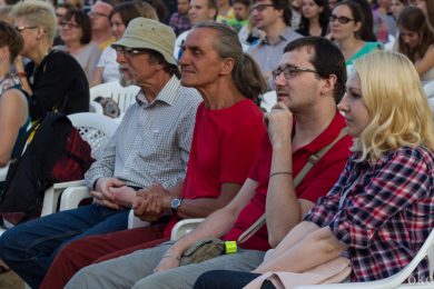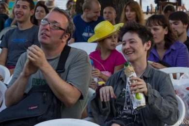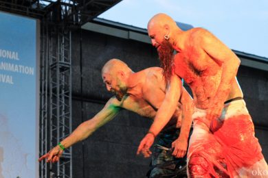Переждав терпимую задержку в полчаса, аудитория вздрогнула от неожиданного, озарившего площадку голоса ведущего: «второй день кинофестиваля можно считать открытым!» На сей раз покорили публику группа роковых (ударение по желанию) барышень ИВА-НОВА и театр АХЕ. Оба коллектива – выходцы из легендарной Пушкинской 10. Лёгкий ветер с Невы, нежный музыкальный экстрим, красочный манифест и витающие в воздухе ароматы шашлыка дали понять: на втором дне фестиваля есть всё и для каждого, на свой вкус, цвет и даже запах. Впрочем, как и представленные в этот день короткие метры.