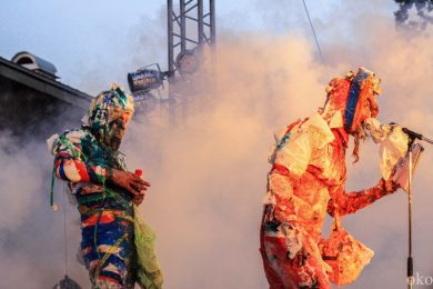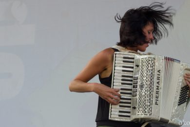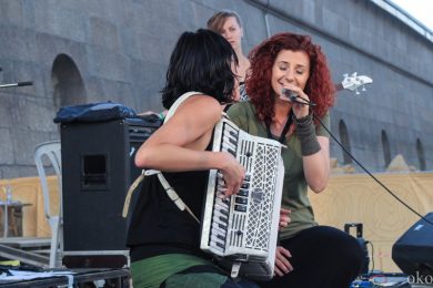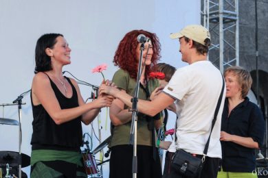 Раз – сели на корточки в круг, два – ладони друг о друга рисуют ритм, и выступление перерастает в шаманский ритуал. Двое детей присоединились к процессии музыкального погружения, не обошлось без «жертв» – порванная майка мужчины, кружащего этих маленьких проказников. Зал танцует сидя, зал танцует стоя: магия ИВА НОВА действует только на открытых и свободных, их творчество – своеобразный музыкальный отбор.