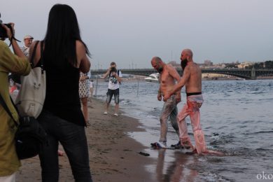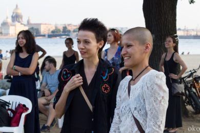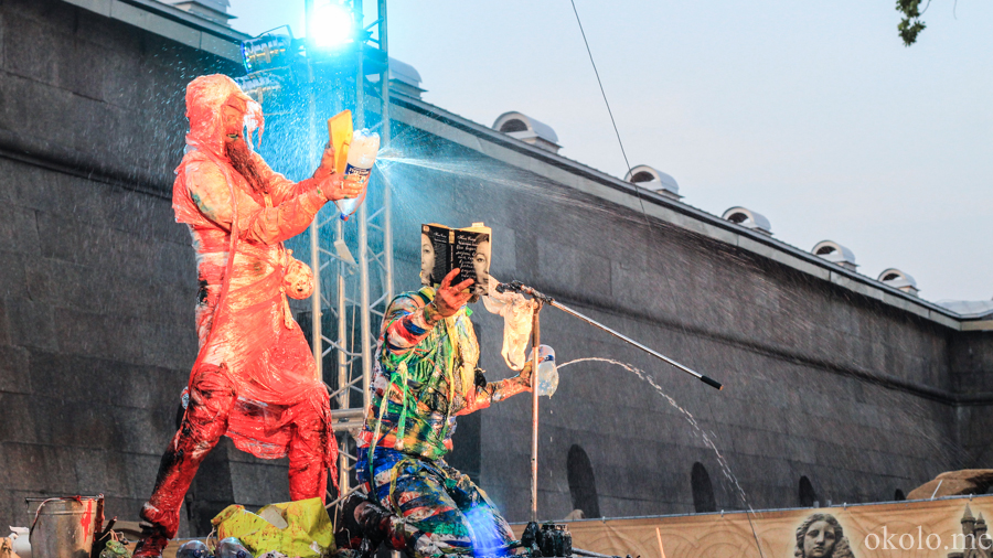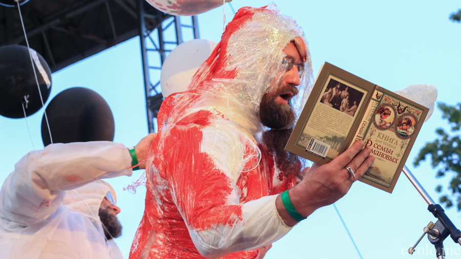 Однако хочется верить, что под подобным девизом фестиваль OPEN CINEMA не пройдёт, ведь в своих речах ребята были весьма искренни: именно за искренность они благодарят наполненные бокалы. Без них, кстати, на фестивале тоже не обошлось. Радует, что в Неву купаться, отмываться от «краски» побежали только участники представления, а не завороженные зрители фестиваля, рванувшие за бородачами вслед.