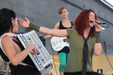 Барышни играют с 2002 года, в Европе их достаточно хорошо знают, а в родной России нет. Может, из-за того, что публика наша, к сожалению, скована или стеснительна, но только не на OPEN—CINEMA! Хотя в танцы, на которых так настаивали девушки, пустились немногие. Зато именно зрители фестиваля стали, возможно, первыми слушателями нового альбом «Крутила пила», который выйдет только в сентябре.