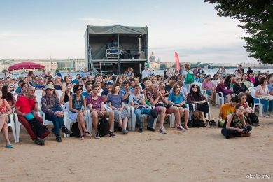 А после зрителей ждал пятичасовой марафон короткометражных фильмов! Всю ночь на большом экране под открытым небом и шум волн Невы зрители наслаждались лучшими картинами за все 10 лет существования фестиваля!