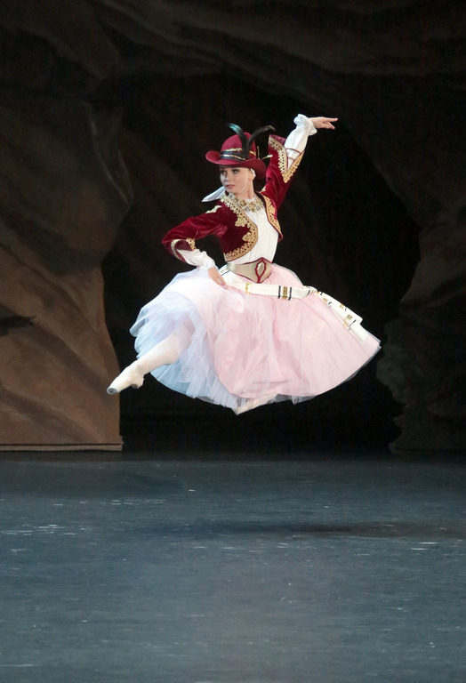 Центральной фигурой этой несколько нелепой истории становится премьер Большого театра американец Дэвид Холберг — первый, между прочим, премьер-американец в русском балете. Герой Дэвида (Спада) – это сочетание аркой, четко акцентированной актерской игры с изощренной хореографией, построенной на невероятной выворотности стопы, которую специально разрабатывали всему основному составу спектакля. Марко Спада – неотразимый злодей, притягательный разбойник, попробовавший на вкус безнаказанность. Именно это отображает пластический рисунок бесконечных фуэте и полетов Холберга. Однако дочь разбойника Анжела (Евгения Образцова) совсем не отстает от разбойника в танце. Её неотразимые соло вносят свежесть в эту абсолютно классическую постановку с достаточно однообразной балетной техникой.