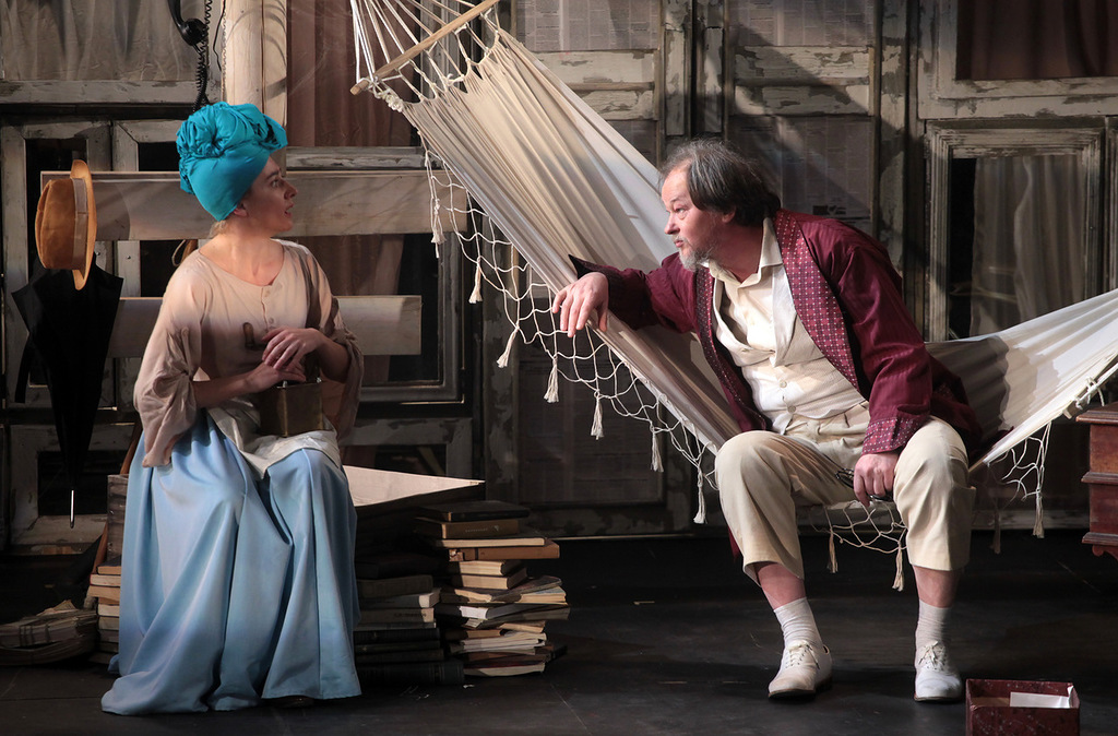 Вот уж правду говорят, любви все возрасты покорны! Героя «Memoria de mis putas tristes» она настигает на закате жизни, в 90 лет. Бывалый любовный кутила и сейчас задумал ночь страстной любви, но на этот раз пожелал не бывшую в употреблении путану, а юную непорочную девственницу. В России это сочинение Маркеса не ставил еще никто, и театр «Мастерская» стал первопроходцем в его «магическом реализме». Под руководством режиссера Екатерины Гороховской повесть была переработана в двухактную постановку, а воссоздать атмосферу Южной Америки взялась Юлия Колченская, проработавшая горячие латиноамериканские мелодии и танцы.