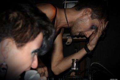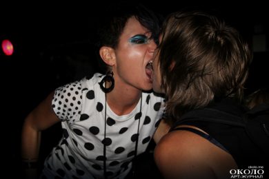Мария Любичева, главный вокалист коллектива, между песнями налила несколько рюмок водки из графинчика и предложила публике – «Если есть еще сектанты, они могут подходить». Женя в свою очередь заметил, что — «Группа аристократичная, наливает водочку по рюмкам из графинчика, а все потому, что сменили прописку».