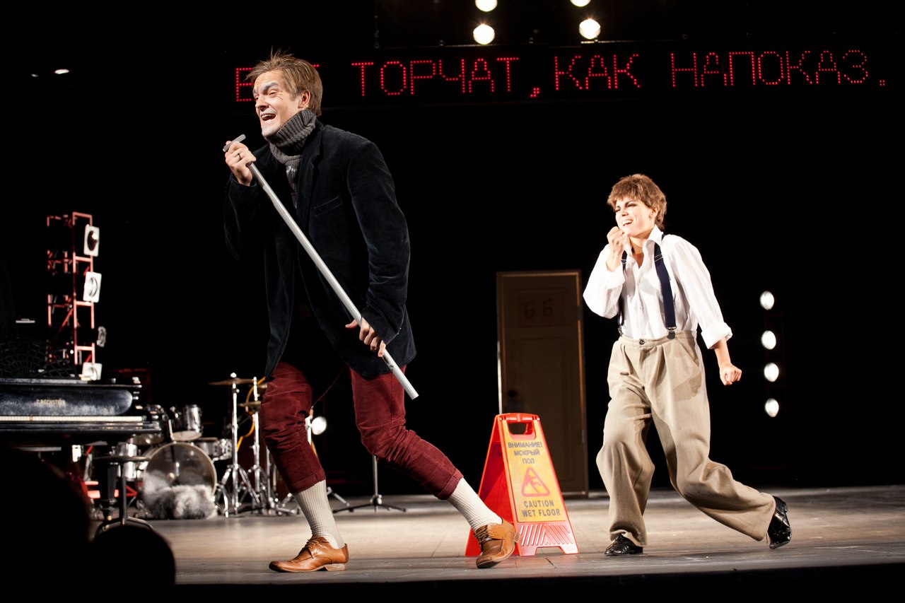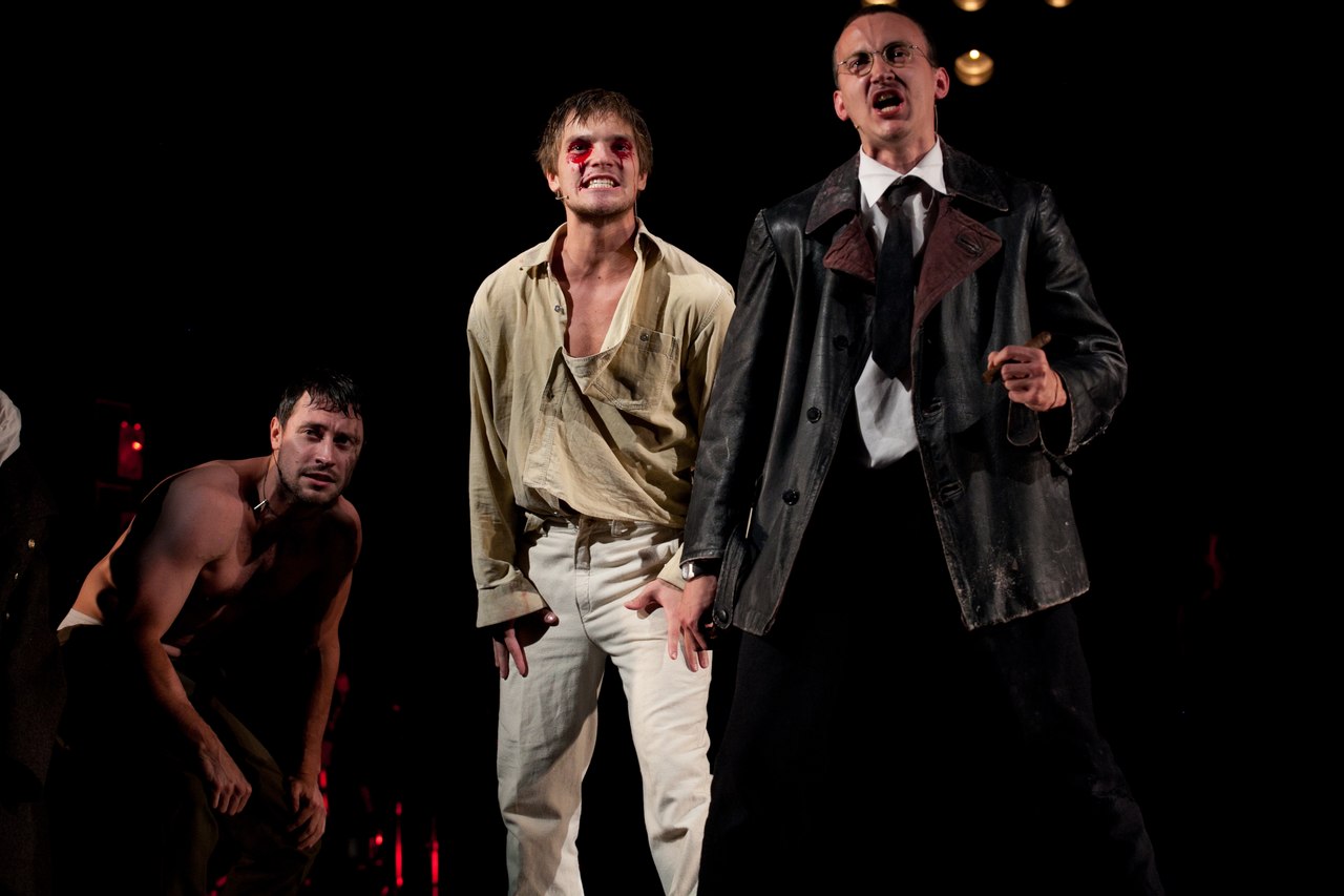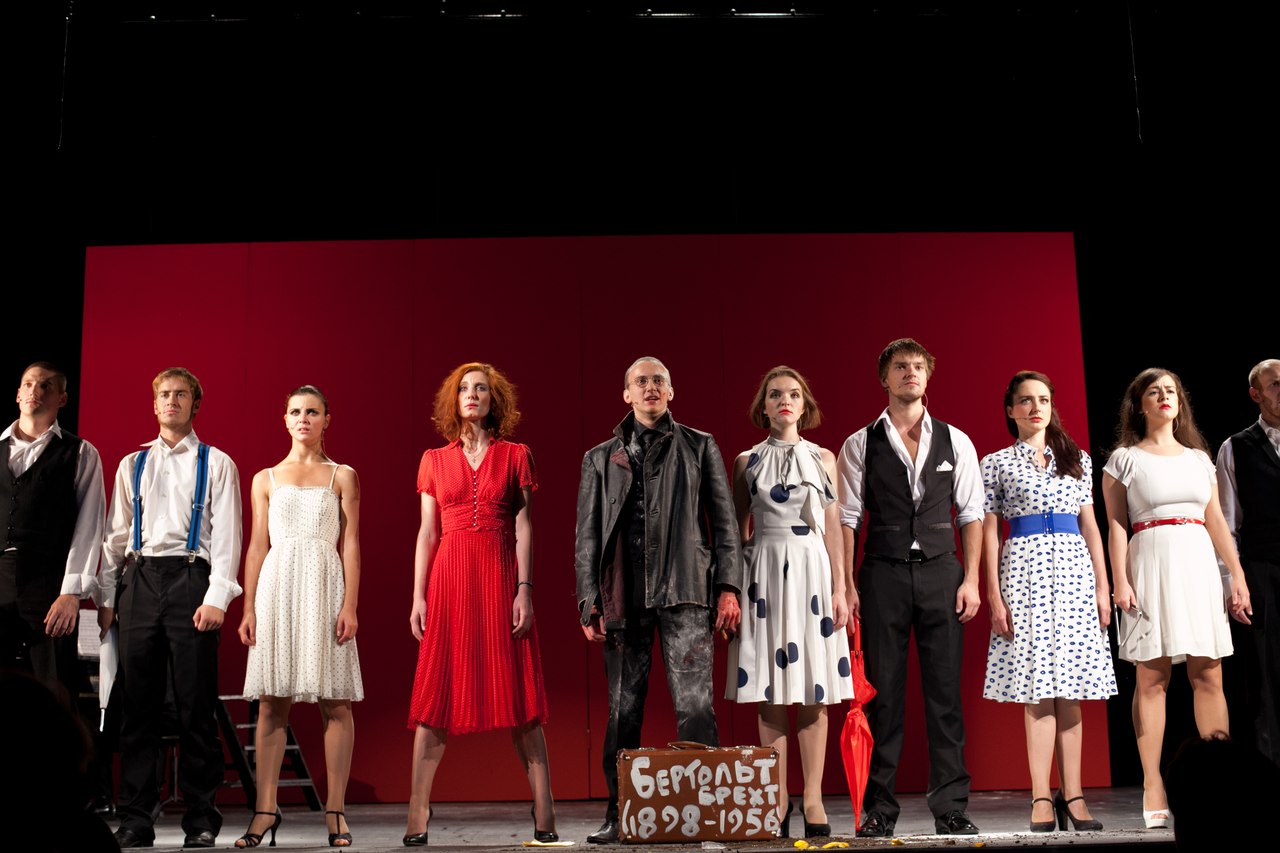 Юрий Николаевич Бутусов представляет жизнь Брехта и его творчество как кабаре. Но кабаре яростное, взрывное, кипящее антивоенными лозунгами и сценами. Молодые артисты театра-студии создали нечто невообразимое! Это какая-то мощнейшая лавина, которая подхватывает и уносит за собой. Сидеть в зале, видеть, слышать, чувствовать ту атмосферу страха, ненависти и ужаса, в которой жил Бертольд Брехт, очень трудно, хочется вставать, куда-то бежать, что-то делать. Не случайно перед спектаклем вместо просьбы отключить мобильные телефоны объявили о возможности топать, хлопать, обсуждать и курить во время представления.