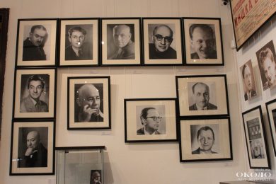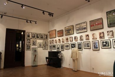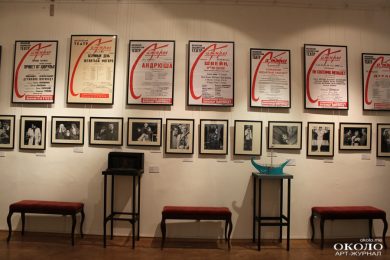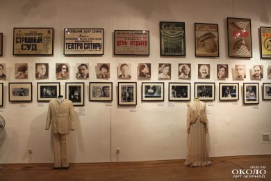 Одна половина зала посвящена истории Театра сатиры, вторая – ее нынешнему художественному руководителю Ширвиндту. При входе в зал первыми в глаза бросаются портреты известных актеров, служивших в этом театре с 1924 года и прославивших его. Доброжелательная работница музея с большим удовольствием представляла мне людей, чьи изображения висели на стене, и с улыбкой на лице она рассказывала: «Вот, видишь, висит в клетчатом платьице? Это Рина Зеленая. А вот Доронин, самый веселый, хороший актер. Это Пельтцер, ей здесь наверно лет сорок. А вот Миронов в спектакле «Горе от ума»…».
