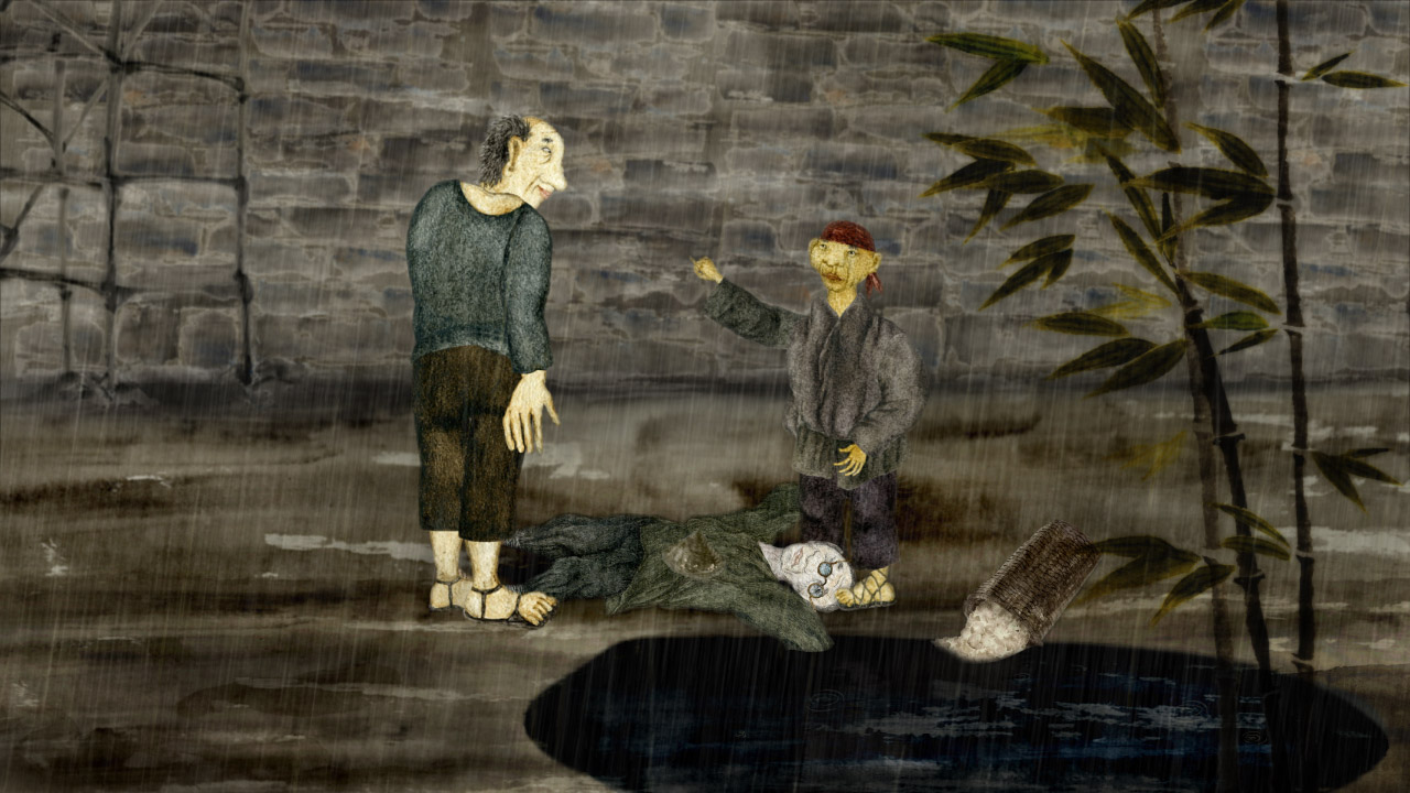 «Canvas on mixed media”, Иран. Анимационная лента в смешанной технике про человечность толпы. В фильме много символов: ворон, несущий патроны, замотанная портретом вождя рана, пушка, пожирающая снаряды.