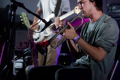 The Retuses – инди-фолк коллектив, получивший в 2011 г. премию «Степной волк». Красивое начало, немного с отсылкой к готике, средневековым балладам, даже пост-панку… И зал как-то, одновременно будто, встал и начал стягиваться к сцене. Словно каждому вдруг захотелось вблизи посмотреть на парня с трубой, на его чувства, которые, казалось, заполняли все помещение. В целом выступление можно охарактеризовать двумя словами:атмосферно и пронизывающе. Богатая музыка, сложная, интересная и красивая; глубокий звук, погружение. Глубоко поэтические тексты.